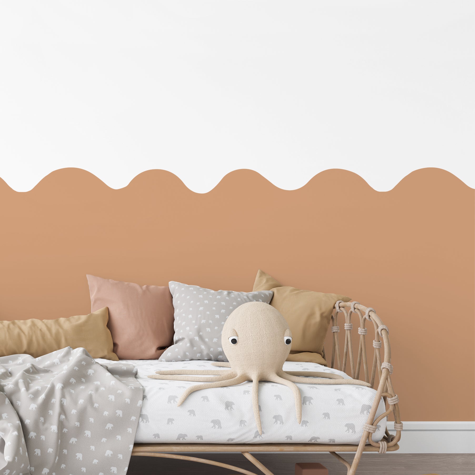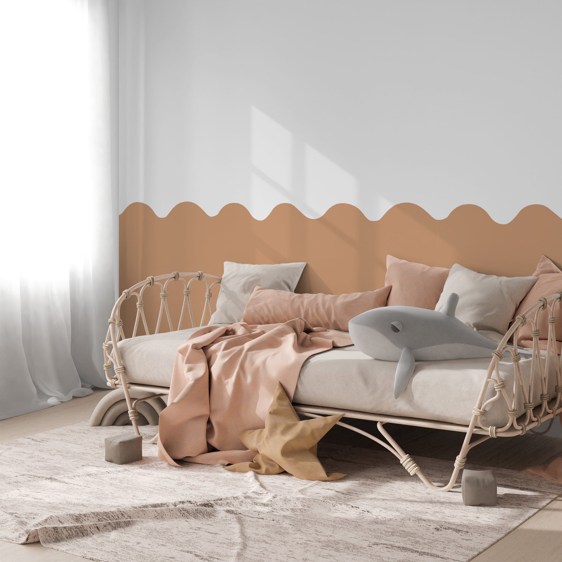 This design is perfect for bedrooms, playrooms, or any space that craves a statement wall without the mess of paint. The subtle curves and calming tones are designed to soothe the eye while adding texture and depth. Easy peel & stick application. Our decals are 100% Australian-made, eco-friendly & sustainably printed to order.